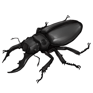 These beetles can grow from 40 to 90 millimetres long, with males usually being larger than females. The head and pronotum extensions are found only on males, as they are using them to fight over females. In real life, their colours usually range from brown to black.