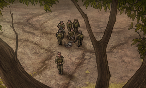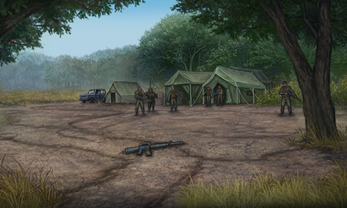 Eventually one of the rangers moves toward you, and now is your chance! You leap from the tree and begin to move toward the poacher camp, looking back to see if they're following. They stay where they are and take pictures instead. Drat!