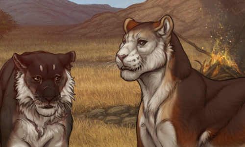 You sit on your haunches and watch curiously. After a time, Anesu breaks off and walks toward you. With hesitation she reaches out her hand, and with a purr you meet her halfway, pressing your head against her hand. Her presence is comforting, and neither one of you feel any fear. Perhaps this was the purpose of Kutsiva's blessing.