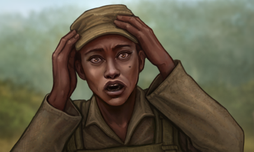 She moves to come near, but shouts from the other rangers stop her. "Anesu" is yelled several times, and she seems to react to it. Her name, perhaps?