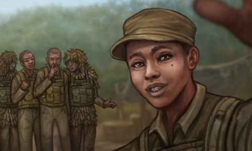 The lady crouches and taps the ground, and you oblige by laying down and dropping the gifts. Nervous chattering from the other rangers carries to you, and you keep your eyes locked on Anesu.