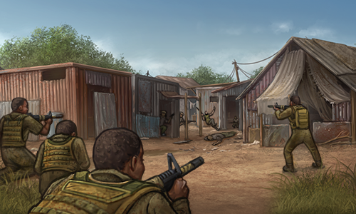 The first group moves ahead to create a distraction while Anesu and the other group move toward the buildings. The tension is so thick that you could slice it with a claw.