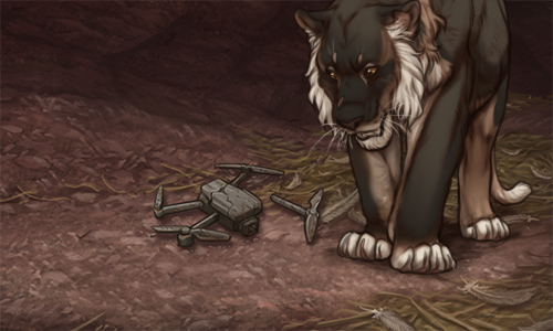 Taking a deep breath, you reveal yourself and the drone. The rangers freeze in place and slowly back off with wide eyes. Tread carefully, lion.
